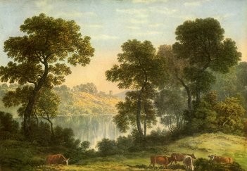 The English School of Water-Colour Painting was now firmly established, and several artists have been claimed to be the “father” of it. Amongst them were William Tavener, an amateur painter, whose drawings were never topographically correct, as he exaggerated buildings to give them a classic appearance; Samuel Scott, a marine painter and styled the English Canaletto, he was called by Horace Walpole “the first painter of the age—one whose works will charm any age,” and was also a friend of Hogarth; also Alexander Cozens, born in Russia and the reputed son of Peter the Great, but lately it has been suggested that Richard Cozens, a ship-builder, who went to Russia in 1700, may have been his father. He was sent to Italy to study art, and afterwards came to England. He professed to teach amateurs how to produce pictures without study. Edwards, in his “Anecdotes of Painting,” describes his process as dashing out a number of accidental large blots and loose flourishes from which he selected forms and sometimes produced very grand ideas. Dayes called him “Blotmaster-general to the town.”