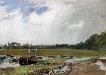 The drawings by David Cox, although executed in an apparently careless manner, give a greater rendering of atmospheric qualities and of irradiation of light with a feeling of more movement than can be found in the works of Fielding. Cox’s early drawings were executed in a somewhat stiff and restrained manner, with a delicate finish, but afterwards his style became broad and he produced those breezy effects which are almost unrivalled. Boys Fishing (Plate XVIII) is an excellent example of his later work. When Cox returned to his native town, Birmingham, he devoted his attention to working in oils, and the City Art Gallery possesses a superb collection of his paintings in this medium. He was for the greater part of his life a teacher of drawing, and he published a “Treatise on Landscape Painting and Effect in Water Colours,” in which his views are clearly stated.*