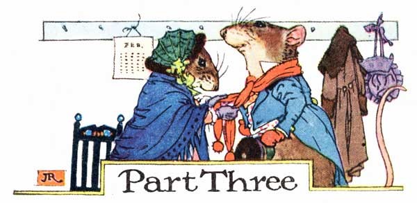 So Mother Meadow-Mouse put on her little dark blue shawl, and Father Meadow-Mouse put on his little bright red muffler, and, taking two sacks with them, they started off to get the corn.