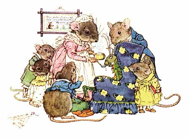 Good Father Meadow-Mouse then covered him up carefully with the very warmest blanket from his own bed.