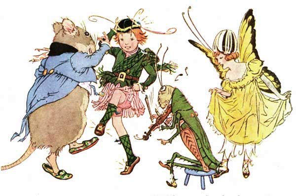 Oh, how the little Meadow-Mouse Children enjoyed dancing lessons! Of course they couldn't equal the wonderful twirling leaps of their teacher, Grasshopper Green, but they did very well, and you should have seen how gracefully they waved their tails; and that was something that Grasshopper Green couldn't do—for the reason, of course, that he hadn't any tail to wave.