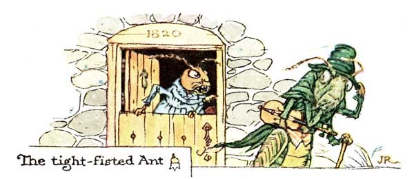 f Course you know the story of "The Grasshopper and the Ant"—how one autumn, when the winds were growing raw and cold and the nights frosty, the poor Grasshopper, who hadn't done anything but fiddle and dance all through the pleasant summer and had nothing laid by for the hard winter, went to the thrifty Ant and asked for a bite to eat and a chance to warm his toes in the chimney corner. And how the tight-fisted Ant refused and said to the shivering Grasshopper, "Keep on fiddling and dancing, it may help to keep you warm!"