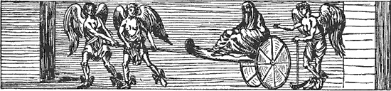 Рис. 1. Фриз из Гроттадель-Кардинале. Крылатые гении везут умершую женщину к Аиду. С гравюры Байреса в «Гипогеях Тарквинии», часть II, илл. 8.