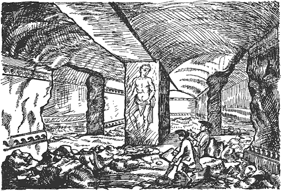 Рис. 3. Открытие гробницы Тифона. С гравюры Байреса в «Гипогеях Тарквинии», часть I, илл. 4.
