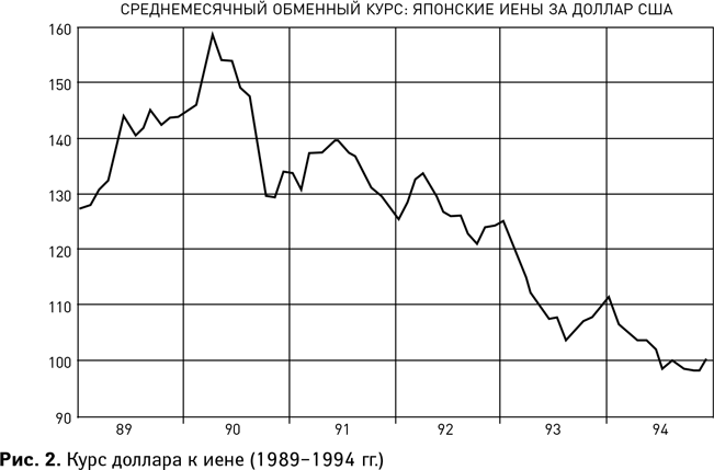 - Колебания цены доллара в иенах (см. рис. 2, показывающий изменение курса валют), или обменного курса.