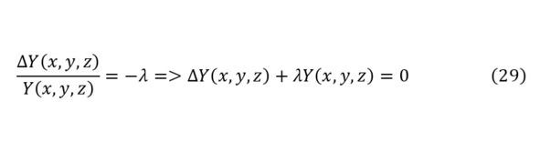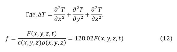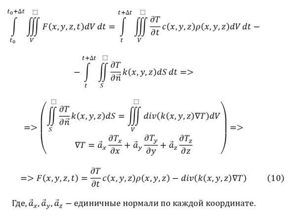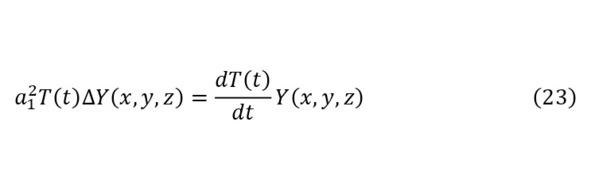 Принимая, что анализ ведётся в декартовом пространстве без перехода в сферическую или цилиндрическую систему координат, результирующее уравнение описывается в форме дифференциального уравнения в частных производных вида (11), что является уравнением теплопроводности, принимая (12—13).