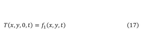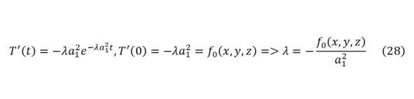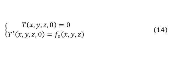 Для получения уравнения, описывающее исследуемое явление, определяется множество решений уравнения, граничные и начальные условия. Величина температуры в начальный момент времени берётся в качестве нуля и учитывается, что известна скорость её изменения в качестве отдельной функции (14).