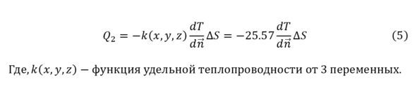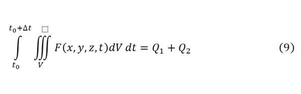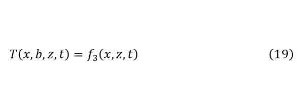Однако, если обратить внимание в (4—6) получается цикл, для разрешения которого необходимо найти специальную функцию от температуры, зависящая от 4 переменных. Поскольку величина входящей энергии известна, и она равна сумме этих двух температур, принимая, что стены помещения достаточно толстые для изоляции помещения, а также указав, что сумма между температурой входящего потока и температурой, образуемая от вводимой энергии также известна и описывается специальной функцией, то можно принять (9). В функции (9) отдельно не указаны явления диффузии, конвекции, абсорбции, но они учитываются на этапе расчёта каждой из заданных функций. Отметив, что перед переходом к (9), необходимо предварительно переписать (4—5) в (7—8).