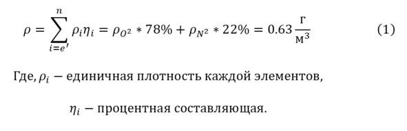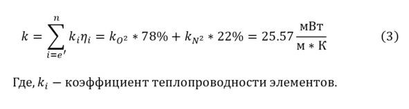 Для разработки настоящей модели, необходимо ввести некоторые данные. Так, пусть анализируется определённое полностью пустое помещение, с единственным окном. При этом известен объём помещения V, площадь окна So, а также установлено, в что в помещении имеется сухой воздух, состоящий из 78% азота и 22% кислорода, плотность которого равняется (1), коэффициент теплоёмкости (2) и коэффициент теплопроводности (3).