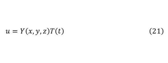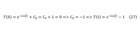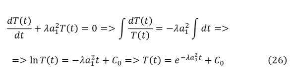 В решении дифференциального уравнения (11), можно применить метод разделения переменных (21), сделав замену (20) и уже из него изначально превратив настоящее неоднородное уравнение теплопроводности в частных производных второго порядка в однородное (22).