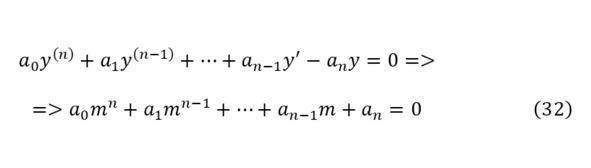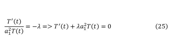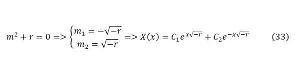 Далее, решение такого уравнение определяется через нахождение характеристического уравнения, согласно (32) в виде (33), где находиться решение с двумя неизвестными постоянными и собственным значением для обыкновенного дифференциального уравнения первой переменной.