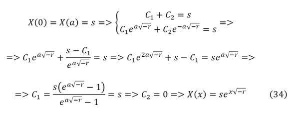 Учитывая вывод для граничных условий, определяется решение уравнения (32) с уже определёнными значениями для постоянных (34).