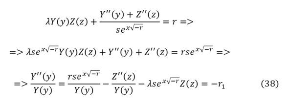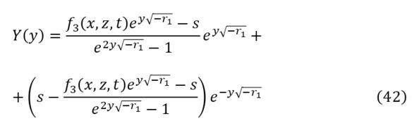 Продолжение решения представляется после подстановки решения уравнения (42) для уравнения с третьей пространственной переменной, которая является дифференциальным уравнением второго порядка (43) и для которого вводятся специальные переменные (43).