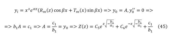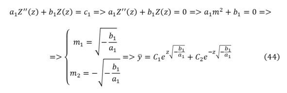 Поскольку полученное обыкновенное дифференциальное уравнение второго порядка неоднородно, изначально находиться решение для его однородной части, а после вычисляется решение неоднородной части в результате приходя к единому решению (45).