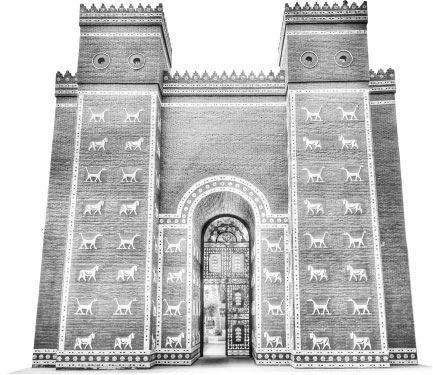 Навуходоносор II, царь Вавилона, знаменит тем, что приказал высадить висячие сады Семирамиды. Также он известен как великий воитель, «покоритель народов». Пышные висячие сады, по легендам, росли на склоне рукотворной горы, должны были порадовать жену царя, персианку, которой не нравилось жить в сухой пустыне. Новшеством в городе времен Навуходоносора также были ворота богини Иштар – вход во внутренний город для вавилонской знати. Ворота покрыты изображениями живых существ, в частности львов и цветов. Самыми примечательными из них считают изображения дракона-сирруша – воплощения бога Мардука, покровителя Вавилона (и любимого бога царя), и быка – дикого предка домашнего скота, воплощения Адада, бога дождя, которого следовало умилостивить, чтобы отогнать голод.