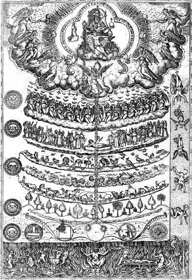 Великая цепь бытия лежала в основе западной философии со времен Аристотеля и приблизительно до 1800 г. Она строилась на трех принципах: во Вселенной существуют все виды жизни, какие можно представить; каждый вид почти неощутимо отличается от своих ближайших сородичей, поэтому все формы жизни постепенно переходят из одного в другой; все виды занимают свое место в Великой цепи, или лестнице, бытия, которая идет вверх от низшей формы жизни до Бога.
