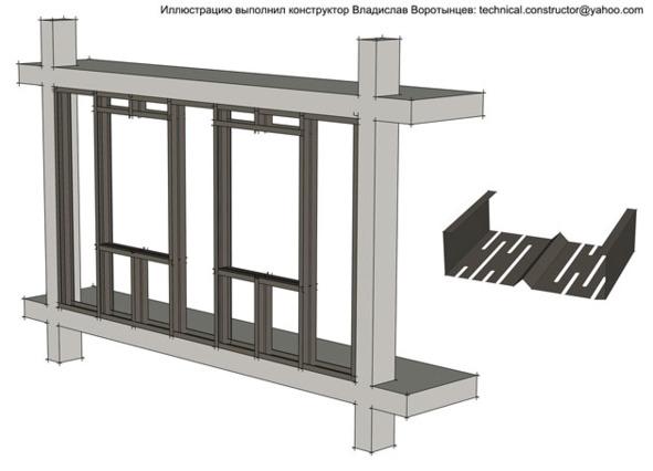 Рис. 9.8 Заполняющий каркас из тонких стальных профилей