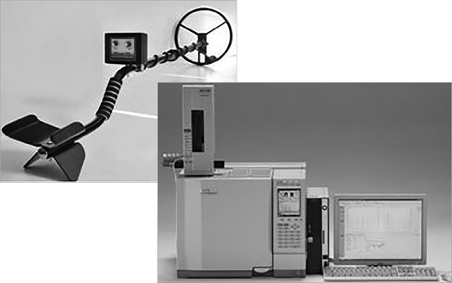 Рис. 4. Металлоискатель «Пират» (слева) и газовый хроматограф — GC- 2010 Plus (справа)