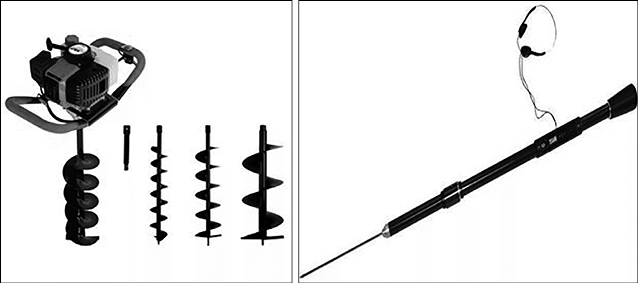 Рис. 6. Земляной бур (слева) и щуп электронный «ЗОНД-К» (справа)