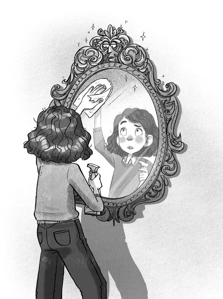 Вздохнув, девочка продолжила протирать зеркало тряпкой. Она уже две недели ходила в Школу Чудес Вильмы Кружепляс, и всё это время вместе с ещё пятью одноклассниками они занимались тем, что приводили виллу в порядок. Точнее говоря, всё это время они разбирали первый этаж, на котором находилась кухня, маленькая гостиная и нечто вроде мастерской со множеством столов и полок. На втором этаже располагались комнаты Вильмы, там чудо-учительница убиралась самостоятельно, а на чердак детей пока что не пускали.