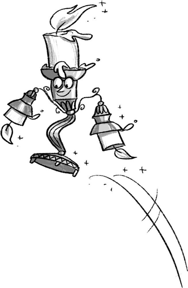 Он удивлённо запнулся, заметив, что Пип хихикает. Тилли тоже с трудом сдерживала улыбку. Прямо позади Габриэля возникла маленькая фигурка. Это был Люкс, волшебный подсвечник Тилли, который, кривляясь, передразнивал ужимки мальчика. Затем он выдохнул пару облачков дыма, похожих на буквы «Хр-р-р». Он всегда так делал, когда что-то казалось ему ужасно скучным.