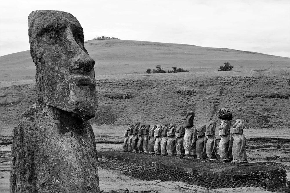 Скульптуры моаи на платформе Тонгарики. Остров Пасхи, Чили