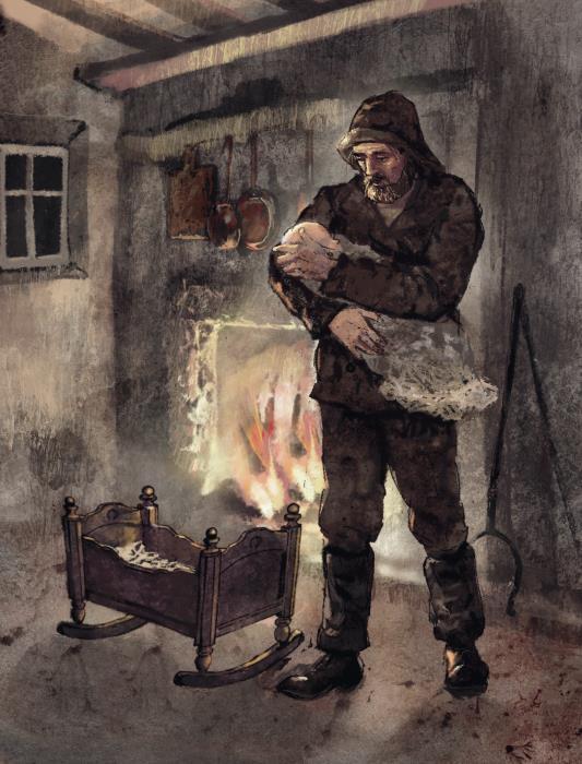 – У нас в доме нет даже крошки съестного, – сказала она соседке. – Я схожу в город, и мы с девочкой перебьёмся как-нибудь до возвращения мужа.