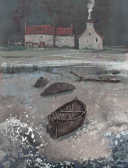 Рыбачьи лодки, повытащенные на берег, образовали на белом песке длинный ряд тёмных килей, напоминающих хребты громадных рыб. Никто не отваживался заняться промыслом в такую погоду. На единственной улице деревушки редко можно было увидеть человека, покинувшего дом; холодный вихрь, нёсшийся с береговых холмов в пустоту горизонта, делал «открытый воздух» суровой пыткой. Все трубы Каперны дымились с утра до вечера, трепля дым по крутым крышам.