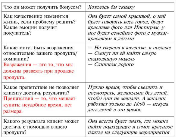 Вам не обязательно использовать все вопросы с таблицы выше. Подумайте и запишите, что будет актуально именно для вас.