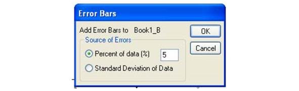 Когда окно графика активно, выберете в верхней панели пункт Graph. В ниспадающем меню следует выбрать пункт Add Error Bars. Появится еще одно активное окно Error Bars (рисунок 1.24).