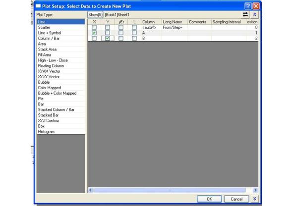 В верхней части отметить галочкой соответствие между X и столбцом A рабочей книги, соответствие между Y и столбцом B.