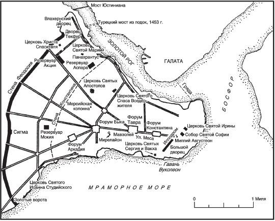 Те, кто не смог по достоинству оценить эти географические преимущества, были не первыми, не заметившими достоинств города. За несколько веков до этого Греция, будучи ведущей мировой державой, столкнулась с экономическими трудностями, и многие из ее городов-государств поощряли своих граждан уезжать в другие края, из которых на родину можно привезти пищу и прочие предметы первой необходимости. В результате многие греки основали на берегах Черного моря независимые самоуправляемые города, известные как колонии. В VII веке до н. э. группа переселенцев из Мегары выбрала себе предводителя по имени Виз. Перед отъездом из родного города они отправились к любимому оракулу, надеясь, что он посоветует, где основать колонию. В свойственной оракулам манере ответ прозвучал как загадка: «Идите и поселитесь напротив города слепых». Мегарийцы сели на суда и добрались до южного входа в Босфор, где на азиатском берегу Мраморного моря стоял греческий колониальный город Халкидон (рядом с современной Модой). С удовольствием окинув взглядом прекрасный пейзаж, представший перед ними, мегарийцы высадились на треугольнике земли, вдающемся в море на противоположном (то есть европейском) берегу. Переселенцы, заметившие его выгодное расположение так же быстро, как впоследствии Константин, решили, что жители Халкидона, которые могли выбирать место для города по своему усмотрению, и есть те самые «слепые», о которых говорил оракул. Они основали свое поселение на мысе. Впоследствии, несмотря на все преимущества, город предстал перед Константином слишком маленьким для столицы. В 324 году он наметил новые границы для городских стен и повелел выстроить дворец, необходимые административные здания, форум и церковь, которую посвятил Софии, Святой (Божественной) Мудрости. Работы были завершены через шесть лет, и в 330 году н. э. Константин объявил город столицей.