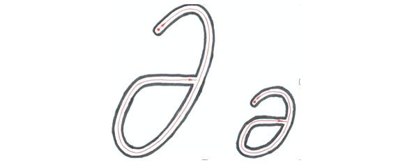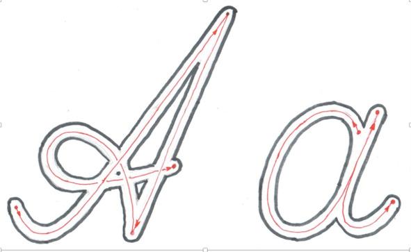 ЗАДАНИЕ №2. По линии стрелки внутри контура прописной буквы провести цветными карандашами по очереди; красным, жёлтым, зелёным и синим.