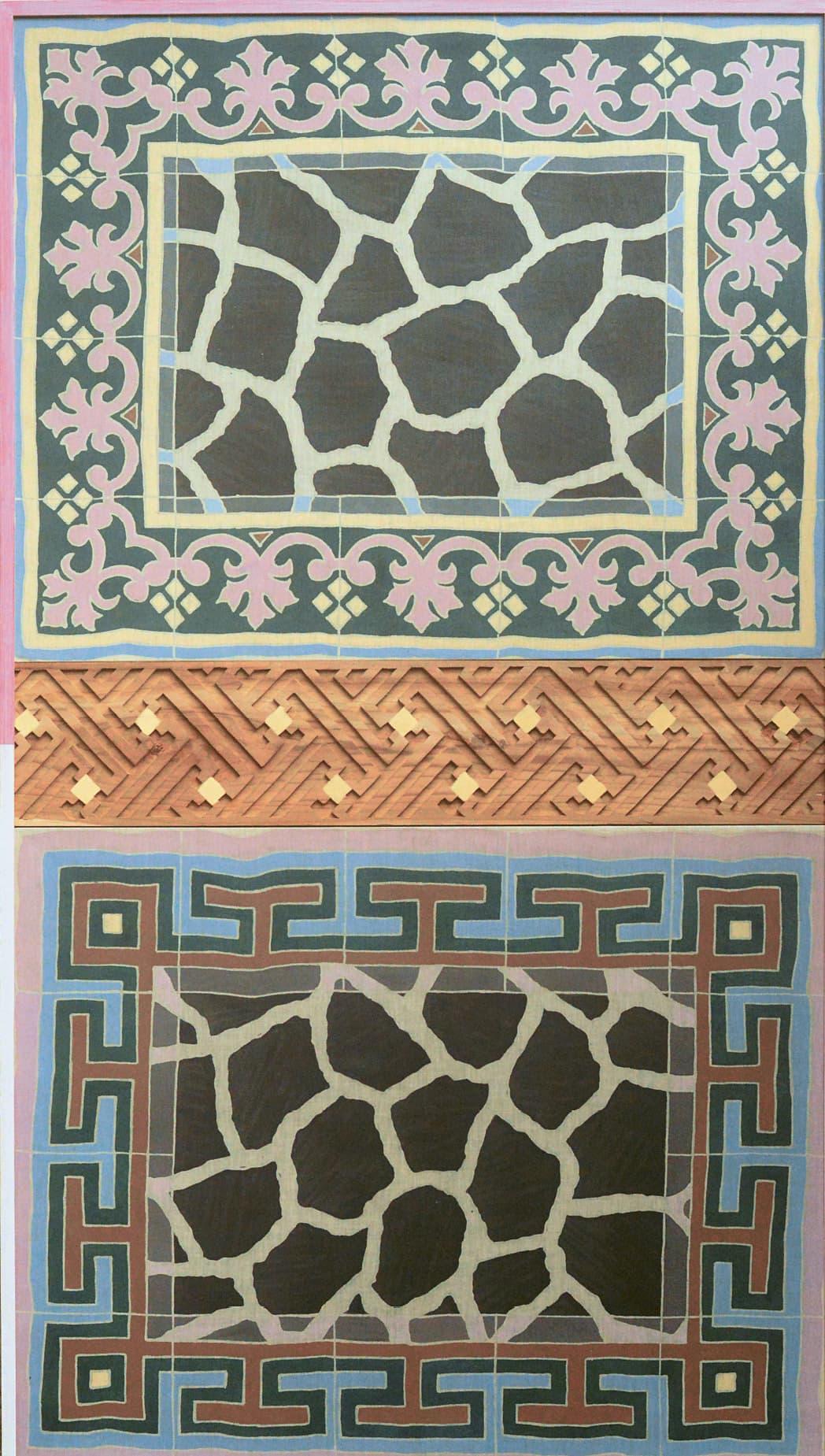 Стоит вкратце уточнить терминологию. Я использую слово «художник», а не «живописец», и это решение во многом продиктовано коренными переменами, вызванными постстудийной практикой. Если в двух словах, то термин «живописец» — узкоспециальный, а термин «художник» — общий, и именно он больше принят сегодня как в академических кругах и критике, так и среди практиков, которые работают с краской, но могут обращаться и к другим медиа, от перформанса до анимации. Так, Франсис Алис (род. 1959, Бельгия) бросает вызов традиционным представлениям о живописи, совершая прогулку вдоль линий, разделивших в 1948 году Иерусалим, и оставляя за собой след зеленой краски (илл. 2) или, в другом провокационном проекте, собирая сотни копий портрета христианской святой Фабиолы. Также он размывает идентичность «живописца» в совместной работе с мексиканскими художниками вывесок (rotulistas), которые пишут увеличенные или как-то иначе измененные реплики его картин. Расширяет понятие живописи и Шейла Хикс (род. 1934, США), известная прежде всего своими чувственными, яркими цветными конструкциями из текстиля, которые часто свисают со стен или, как в Восхождении за пределы цветных земель (2016–2017) (илл. 3), спускаются с них каскадом. Хикс решительно заявляет, что эти работы родом из живописи, а не из ткацкого дела.