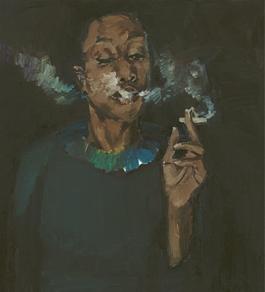 Третья глава посвящена Производству и дистрибуции — тому, как художники создают картины в мастерских или на компьютерных экранах, а затем берутся за их распространение. Иначе говоря — тому, как картины путешествуют в галереи и на ярмарки, через континенты и интернет вместе со своими создателями или без них. Чатчай Пуипия (род. 1964, Таиланд) привлекает внимание к этой миграции образов по временам и пространствам, изображая, к примеру, увядшие и почерневшие Подсолнухи Ван Гога (илл. 10). Важной частью современного арт-производства является аутсорсинг: многие нынешние картины написаны — по крайней мере частично — не тем, кто фигурирует как их автор, а кем-то другим, причем автора и исполнителя порой разделяет огромное расстояние. В этом смысле современная живопись на удивление сродни старым европейским мастерским с их подмастерьями и ассистентами, хотя в то же время ей не чуждо индустриальное разделение труда, характерное для коммерческих дизайн-студий и архитектурных бюро, а в искусстве взятое на вооружение концептуалистами. В скульптуре уже к 1960-м годам произошло разделение концепции и реализации, которая в случае технически сложных и масштабных проектов поручалась сторонним специалистам, но живопись отставала от этих перемен. Сегодня этот разрыв преодолен, и всё же многие художники по-прежнему дорожат спецификой ручного труда и индивидуального контроля. Так, Линетт Ядом-Боакье (род. 1977, Великобритания) доверяется только собственному воображению, создавая портреты вымышленных чернокожих мужчин и женщин, которые словно материализуются на поверхности холста прямо перед нами, окутанные таинственной аурой грезы (илл. 11).
