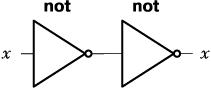 Я подключаю выход одного вентиля not ко входу другого, чтобы показать, что вы получаете то же самое значение, которое вводите; x может быть 0, либо 1.