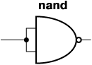 Несмотря на то что такой вентиль, как nand, имеет два входа, мы можем ввести одинаковое значение в каждый вход. Мы показываем это таким образом: