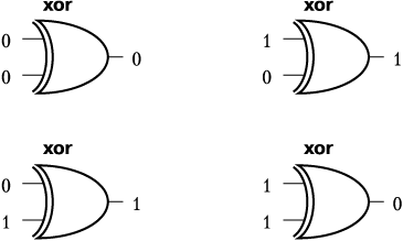 Если сосредоточиться на значении после знаков равенства и временно забывать о переносе в последнем случае, то мы получаем то же самое, что делает xor с двумя входами.