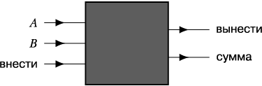 Мы называем S битом суммы и С выходным битом переноса. Эта схема называется полусумматором, поскольку, как написано, ее нельзя использовать в середине более крупной схемы. Здесь чего-то не хватает. Догадаетесь, чего именно?
