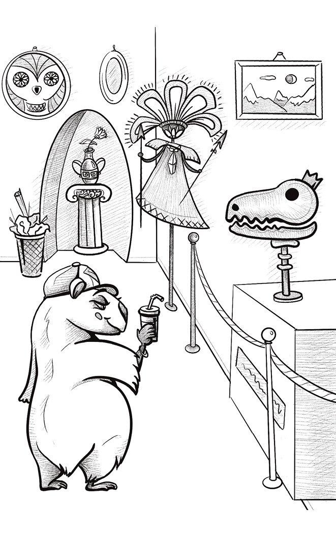 Охрана, сотрудники музея во главе с директором и его мрачным помощником и журналисты неуверенно зашептались. Они украдкой кидали взгляды на пухленькую, в очках и лимонно-желтой бейсболке, капибару которая с недовольным видом сидела в углу и что-то потягивала из большой термокружки.