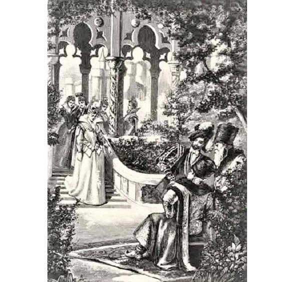 Лжедмитрий в саду у Мнишек. Гравюра