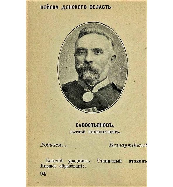 Атаман станицы Митякинской Савостьянов Матвей Никифорович, депутат Государственной Думы.