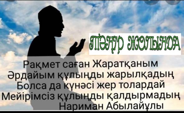 Тәңір жолында атты бұл кітабым бір Алланың жолындағы исламмен жанасатын қазақ және орыс тілінде жазылған өлең шумақтары. В данной книге собраны все стихи автора на двух языках: казахский и русский. Книга содержит исламские взгляды.