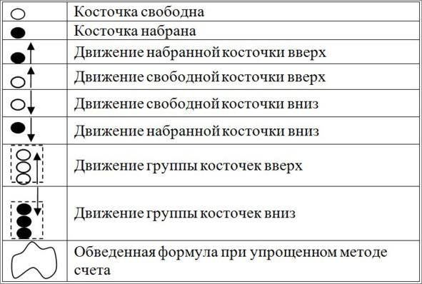 Все вычисления на абакусе производятся большими и указательными пальцами обеих рук. При наборе земных косточек мы поднимаем их большим пальцем, опускаем указательным.