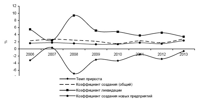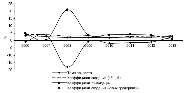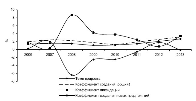 Исключением можно считать только 2008 г., когда смертность среди предприятий была сверхвысокой -21 %.