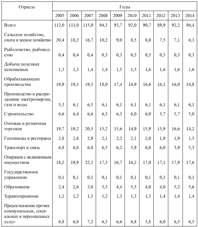 Мы здесь не обсуждаем общественные и религиозные организации, так как их доля в общей занятости крайне мала.