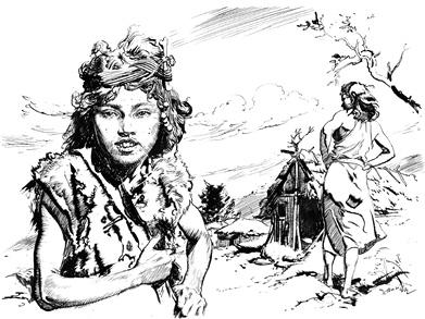 Три года миновало с тех пор — как же быстро они пролетели! Хорошо помнит Следопыт ту, прежнюю, молодую жену, лучившуюся счастьем. Пришла она к Следопыту не с пустыми руками. Дали за ней большое приданое, которое ее отец самолично в день свадьбы принес в хижину зятя. Три камня под очаг, несколько глиняных посудин, которые невеста сама вылепила и украсила, бронзовый нож, две деревянные ложки и огромный, тщательно выровненный гладкий гранитный круг — жернов для измельчения зерна.