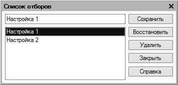 Текущую настройку фильтра можно сохранить, воспользовавшись кнопкой Отборы. При нажатии на данную кнопку на экране открывается окно, изображенное на рис. 1.7.