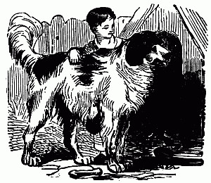 Then Frankie would run along wheeling his barrow, and Ponto close beside him, until they came to the woodpile. Here the little boy stopped, and began to fill his barrow with sticks; and Ponto picked them up in his teeth almost as fast as Frankie did with his hands. Sometimes he was wild and full of fun, so that when Frankie wanted to take the stick from his mouth and put it in the barrow, Ponto would spring up into the air, and run away; but when he heard his master say, "Come here, sir," he would be sober in a moment. O, Ponto was a very knowing dog indeed!