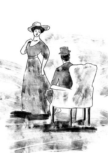 Сначала он выпил кофе, все время опасаясь, как бы не уронить чашку на ковер; затем с облегченным сердцем стал искать случая подойти к жене своего нового начальника и завязать с нею разговор.